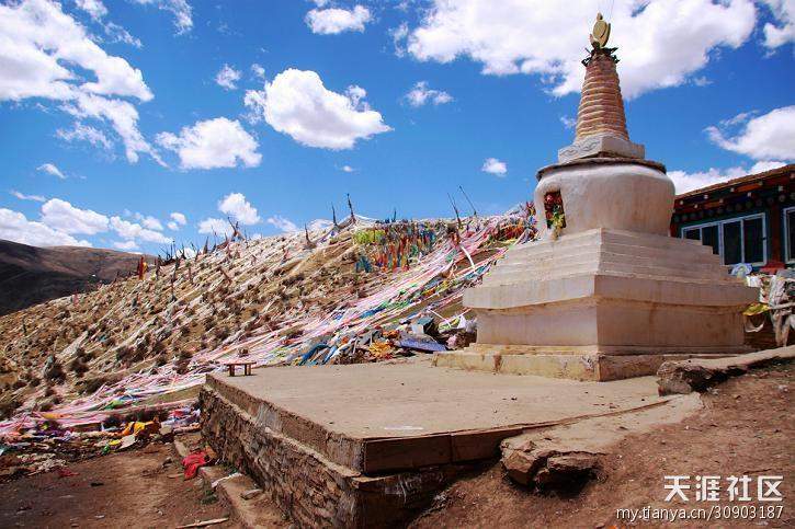 天葬台旁的佛塔。不管你信与不信,由于天葬这个题材比较敏感,大多数观众都会围着这个佛塔转三圈,然后扯一根头发放到天葬台上,以保平安。