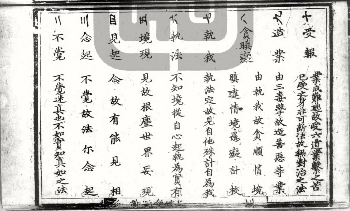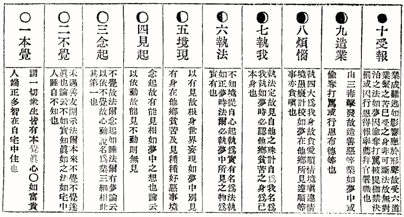详究前述谛观此图。对勘自他及想贤圣。为同为异。为真为妄。我在何门。佛在何位。为当别体。为复同源。即自然不执着于凡夫。不僣滥于圣位。不耽滞于爱见。不推让于佛心也。然初十重是一藏经所治法身中(第一重)烦恼之病生起元由(次三重)。渐渐加增(我法二执)。乃至粗重(三毒造业)慧灭(受报)之状。后十重是法身信方服药(前三重汗出)汗出病差(菩提心开发)。将理方法(六波罗蜜)。渐渐减退(从六至九)。乃至平复(成佛)之状。如有一人(在缠法身)诸根具足(恒沙功德)。强壮(常住不变妄不能染)多艺(恒沙妙用)。忽然得病(无始无明)。渐渐加增(其次七重)。乃至气绝(第十重)。唯心头暖(赖耶识中无漏智种)。忽遇良医(大善知识)。知其命在(见凡夫人即心是佛)。强灌神药(初闻不信频就不舍)。忽然苏醒(悟解)。初未能言(初悟之人未能说法答他问难皆悉未得)。乃至渐语(能说法也)。渐能行履(十地十波罗蜜)。直至平复(成佛)。所解伎艺无所不为(神通光明一切种智)。以法一一对合。何有疑而不除也。即知一切众生不能神变作用者。但以业识惑病所拘。非己法身不具妙德。今愚者难云。汝既顿悟即佛。何不放光者。何殊令病未平复之人。便作身上本艺。然世医处方必先候脉。若不对病状轻重。何辨方书是非。若不约痊愈浅深。何论将理法则。法医亦尔。故今具述迷悟各十重之本末。将前经论统三种之浅深。相对照之如指其掌。劝诸学者。善自安心。行即任随寄一门解。即须通达无碍。又不得虑其偏局。便[漭-廾+卉]荡无所指归。须洞鉴源流。令分菽麦。必使同中见异异处而同。镜像千差。莫执好丑。镜明一相。莫忌青黄。千器一金虽无阻隔。一珠千影元不混和。建志运心等虚空界。防非察念在毫厘间。见色闻声。自思如影响否。动身举意。自料为佛法否。美膳粝餐。自想无嫌爱否。炎凉冻暖。自看免避就否。乃至利衰毁誉称讥苦乐。一一审自反照实得情意一种否。必若自料未得如此。即色未似影。声未似响也。设实顿悟终须渐修。莫如贫穷人终日数他宝自无半钱分。六祖大师云。佛说一切法。为度一切心。我无一切心。何须一切法。今时人但将此语轻于听学。都不自观实无心否。若无心者。八风不能动也。设习气未尽。嗔念任运起时。无打骂仇他心。贪念任运起时。无营求令得心。见他荣盛时。无嫉妒求胜心。一切时中于自己无忧饥冻心。无恐人轻贱心。乃至种种此等亦得名为无一切心也。此名修道。若得对违顺等境。都无贪嗔爱恶。此名得道。各各反照。有病即治。无病勿药。问贪嗔等即空便名无一切心。何必对治。答若尔汝今忽遭重病痛苦。痛苦即空。便名无病。何必药治。须知贪嗔空而能发业。业亦空而能招苦。苦亦空只么难忍。故前图中云。体空成事(如杌木上鬼全空。只么惊人。得奔走倒地。头破额裂)。若以业即空。空只么造业。即须知地狱烧煮痛楚亦空。空只么楚痛。若云亦任楚痛者。即现今设有人以火烧刀斫。汝何得不任。今观学道者。闻一句违情语犹不能任。岂肯任烧斫乎(如此者十中有九也)。问上来所叙三种教三宗禅。十所以十别异轮回及修证。又各十重理无不穷事无不备。研寻玩味足可修心。何必更读藏经及集诸禅偈数过百卷。答众生惑病各各不同。数等尘沙。何唯八万。诸圣方便有无量门。一心性相有无量义。上来所述但是提纲。虽统之不出所陈。而用之千变万势。况先哲后俊各有所长。古圣今贤各有所利。故集诸家之善记。其宗徒有不安者亦不改易。但遗阙意义者注而圆之。文字繁重者注而辨之。仍于每一家之首注评大意。提纲意在张网。不可去网存纲(华严云。张大教网。漉人天鱼。置涅槃岸)。举领意在着衣。不可弃衣取领。若但集而不叙。如无纲之网。若但叙而不集。如无网之纲。思而悉之不烦设难。然克己独善之辈。不必遍寻。若欲为人之师。直须备通本末。好学之士披阅之时。必须一一详之。是何宗何教之义。用之不错皆成妙药。用之差互皆成反恶。然结集次第不易排伦。据入道方便即合。先开本心。次通理事。次赞法胜妙呵世过患。次劝诫修习。后示以对治方便渐次门户。今欲依此编之。乃觉师资昭穆颠倒交不稳便。且如六代之后。多述一真。达摩大师却教四行。不可孙为部首。祖为末篇。数日之中思惟此事。欲将达摩宗枝之外为首。又以彼诸家所教之禅。所述之理。非代代可师。通方之常道。或因以彼修炼功至证得。即以之示人(求那慧稠卧轮之类)。或因听读圣教生解。即以之摄众(慧闻禅师之类)。或降其迹而适性。一时间警策群迷(志公傅大士王梵志之类)。或高其节而守法。一国中轨范僧侣(庐山远公之类)其所制作。或咏歌至道。或嗟叹迷凡。或但释义。或唯励行。或笼罗诸教。竟不指南。或偏赞一门。事不通众。虽皆禅门影响佛法笙簧。若始终依之为释迦法。即未可也(天台言教广本虽备有始终又不在此集之内)。以心传嗣。唯达摩宗。心是法源。何法不备。所修禅行似局一门。所传心宗实通三学。况覆寻其始(始者迦叶阿难)。亲禀释迦。代代相承。一一面授。三十七世(有云。西国已有二十八祖者。下祖传序中。即具分析)至于吾师(缅思何幸得为释迦三十八代嫡孙也)。故今所集之次者先录达摩一宗。次编诸家杂述。后写印一宗圣