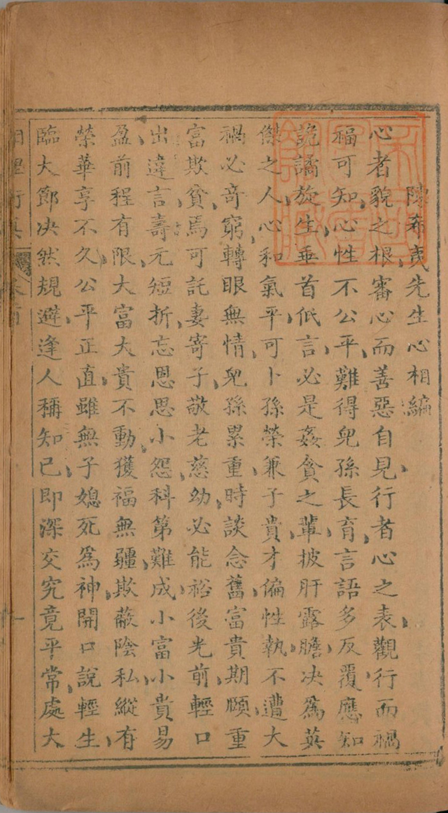 心者貌之根,审心而善恶自见;行者心之表,观行而祸福可知。心性不公平,难得儿孙长育;语言多反复,应知诡谲旋生。垂首低言,必是奸贪之辈;披肝露胆,决为英杰之人。心和气平,可卜孙荣兼子贵;才偏性执,不遭大祸必奇穷。转眼无情,儿孙累重;时谈念旧,富贵期颐。重富欺贫,焉可托妻寄子;敬老慈幼,必能裕后光前。轻口出违言,寿元短折;忘恩思小怨,科第难成。小富小贵易盈,前程有限;大富大贵不动,获福无疆。欺蔽阴私,纵有荣华儿不享;公平正直,虽无子息死为神。开口说轻生,临大节决然规避;逢人称知己,即深交究竟平常。处大事不辞劳怨,堪为栋梁之材;遇小故辄避嫌疑,岂是心腹之寄。乖戾难堪,因讼丧身还害子;待人处地,无端福禄更延年。迷花恋酒,闺中妻妾参商;利己损人,膝下儿孙悖逆。贱买田园,决生败子;尊崇师傅,定产贤郎。愚鲁人说话尖酸刻薄,既贫穷必损寿元;聪明子语言木讷优容,享安康且膺封诰。患难中能守者,若读书可作朝廷柱石之臣;安乐中若忘者,纵低才岂非金榜青云之客。鄙吝勤劳,亦有大富小康之别,宜观其量;奢侈靡丽,宁无奇人浪子之分,必视其才。弗以见小为守成,惹祸破家难免;莫认惜福为悭吝,轻财仗义尽多。处大事而不急,伟器晚成;能见机而扩充,高才早发。多才吝教,己无成人亦无成;见过隐规,身可托家亦可托。知足与自满不同,一则矜而受灾,一则谦而获福;大才与庸才自别,一则诞而多败,一则实而有成。忮求念胜,图名利,到底逊人;恻隐心多,遇艰难,中途获救。不分德怨,料难至乎遐年;较量锱铢,岂足期乎大受。过刚者图谋易就,灾伤岂保全无;太柔者作事难成,平福亦能安受。乐处生悲,一生辛苦;怒时反笑,至老奸邪。好矜己善,弗再望乎功名;乐摘人非,最足伤乎性命。责人重而责己轻,弗与同谋共事;功归人而过归己,侭堪救患扶灾。处家孝悌无亏,簪缨奕世;与世吉凶同患,血食千年。曲意周全知德后,任情激搏必豺心。易变脸,薄福之人奚较;耐久朋,能容之士可宗。好与人争,滋培浅而前程有限;必求自反,蓄积厚而屈事能伸。少年飞扬浮动,颜子之限难过;壮岁冒昧昏迷,不惑之期怎免。喜怒不择轻重,一事无成;笑骂不审是非,知交断绝。济急拯危,亦有时乎贫乏,天将福矣;解纷排难,恐亦涉乎囹圄,神必佑之。冻饿休怨根基,造恶所致。瘟亡不由运数,获罪于天。甘受人欺,有子自然大发;常思退步,一身终得安闲。得失不惊其神,非贵亦须大富,寿更可知;喜怒不形于色,成名还立大功,奸亦必有。无事失措仓皇,卑躬狭隘;有难怡然安稳,胆识宽宏。处物存心,终身允吉;累仁积德,数世其昌。人事可凭,天道不爽。如何餐刀饮剑,君子刚愎自用,小人行险侥幸。如何投河自缢,男人才短蹈危,女子气盛见逼。如何短折忘身,出薄言、做薄事、存薄心、种种皆薄。如何凶灾恶死,多阴毒、积阴私、有阴行、事事皆阴。如何暴疾而殁,纵欲奢情。如何毒疮而终,肥甘凝腻。如何老后无嗣,性情孤僻。如何盛年丧子,心地欺瞒。如何多遭火盗,刻薄为怀。如何时犯官符,强梁作胆。何知端揆首辅,常怀济物之心。何知拜将封侯,独挟盖世之气。何知玉堂金马,动容清丽。何知建牙拥节,气概凌霄。何知丞簿下吏,量平胆薄。何知明经教职,志近行拘。何知苗而不秀,非惟愚蠢更荒唐;何知秀而不实,盖谓自贤兼短行。若论妇人,先须静默,从来淑女不贵才能。有威严,当膺一品之封;少修饰,能掌万金之重。多言好胜,纵然有嗣必伤身;尽孝兼慈,不特助夫还旺子。贫苦中,毫无怨詈,两国褒封;富贵时,常惜衣粮,满堂荣庆。奴婢成群,定是宽宏待下;赀财盈篋,决然勤俭持家。悍妇多因性妒,老后无归;奚婆定是情乖,少年浪走。为甚欺夫,显然淫行;缘何无子,暗里伤人。合观前论,历试无差,勉教后来,犹期善变。信乎骨格步位,相辅而行允矣;血气精神,由之而显。知其善而守之,锦上添花;知其恶而弗为,祸转为福。 上传日期:2021年11月21日