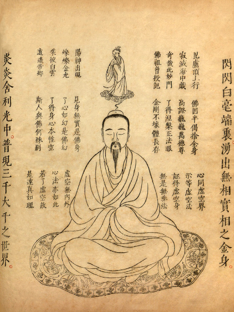 毗卢顶上行,寂灭海中戏; 奇哉此妙门,佛祖曾授记。