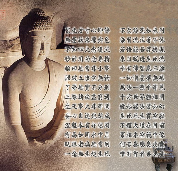 又,大迦叶! 心去如风,不可捉故。 心如流水,生灭不住故。 心如灯焰,众缘有故。 是心如电,念念灭故。 心如虚空,客尘污故。 心如猕猴,贪六欲故。 心如画师,能起种种业因缘故。 心不一定,随逐种种诸烦恼故。 心如大王,一切诸法增上主故。 心常独行,无二无伴,无有二心能一时故。 心如怨家,能与一切诸苦恼故。 心如狂象,蹈诸土舍,能坏一切诸善根故。 心如吞钩,苦中生乐想故。 是心如梦,于无我中生我想故。 心如苍蝇,于不净中起净想故。 心如恶贼,能与种种考掠苦故。 心如恶鬼,求人便故。 心常高下,贪恚所坏故。 心如盗贼,劫一切善根故。 心常贪色,如蛾投火。 心常贪声,如军久行乐胜鼓音。 心常贪香,如猪憙乐不净中卧。 心常贪味,如小女人乐着美食。 心常贪触,如蝇着油。 如是,迦叶!求是心相而不可得。 若不可得,则非过去、未来、现在。 若非过去、未来、现在,则出三世。 若出三世,非有非无。 若非有非无,即是不起。 若不起者,即是无性。 若无性者,即是无生。 若无生者,即是无灭。 若无灭者,则无所离。 若无所离者,则无来无去,无退无生。 若无来无去,无退无生,则无行业。 若无行业,则是无为。 若无为者,则是一切诸圣根本。 是中无有持戒,亦无破戒。 若无持戒无破戒者,是则无行,亦无非行。 若无有行无非行者,是则无心,无心数法。 若无有心,心数法者,则无有业,亦无业报。 若无有业,无业报者,则无苦乐。 若无苦乐,即是圣性,是中无业,无起业者。 无有身业,亦无口业,亦无意业,是中无有上中下差别。 圣性平等,如虚空故。 是性无别,一切诸法等一味故。 是性远离,离身心相故。 是性离一切法,随顺涅槃故。 是性清净,远离一切烦恼垢故。 是性无我,离我我所故。 是性无高下,从平等生故。 是性真谛,第一义谛故。 是性无尽,毕竟不生故。 是性常住,诸法常如故。 是性安乐,涅槃为第一故。 是性清净,离一切相故。 是性无我,求我不可得故。 是性真净,从本已来毕竟净故。 …… 若有人问,心中结使、烦恼、邪见、疑悔病药,尚不能答,何况能治。 菩萨于中,应作是念:我终不以世药为足,我当求习出世智药,亦修一切善根福德。如是菩萨,得智药已,遍到十方,毕竟疗治一切众生。 何谓菩萨出世智药?谓知诸法从缘合生,信一切法无我、无人,亦无众生、寿命、知见,无作无受,信解通达无我我所,于是空法无所得中不惊不畏,勤加精进,而求心相。 菩萨如是求心。 何等是心?若贪欲耶?若瞋恚耶?若愚痴耶?若过去未来现在耶? 若心过去,即是尽灭。 若心未来,未生未至。 若心现在,则无有住。 是心非内非外,亦非中间。 是心无色,无形无对,无识无知,无住无处。 如是心者,十方三世一切诸佛,不已见、不今见、不当见。 若一切佛过去来今而所不见。 上传日期:2013.6.29