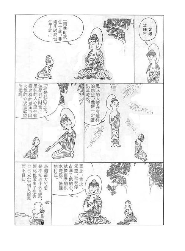 佛陀:如瀑流睡村(图)摘自:蔡志忠佛经漫画《佛陀说·法句经》 制作:道德网