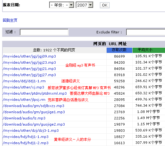 《东方阳熹言道录》一二九、2008年底回顾作者:东方阳熹 道德网站自2006年12月重新开办以来,能够得以一步步走到今天,在此首先稽首感恩: 无比感恩上天的垂怜和厚爱,使我有机会能够在此为众生服务。 无比感恩中华民族的原始祖先:伏羲氏、炎帝、黄帝、尧帝、舜帝等伟大圣人,是他们为我们人类奠定了精神文明和物质文明的基础,才有了我们今日的文明和幸福生活。 无比感恩老子、孔子、释迦牟尼佛、耶稣等各教的圣人,及济公活佛、北海老人、王凤仪善人等历代的先圣先贤,是他们理论的光辉指引,才使我们的心灵获得了光明。 无比感恩各位同学对道德网站的鼓励和支持。没有众生的存在,道德网站就没有任何存在意义。因此道德网站将永远把大家的需求放在首位,永远为大家忠诚的服务。 在这两年的历程中,道德网虽然经历了种种艰难坎坷,但终于将自然的真理,人类的真道,圣人的光辉思想撒遍天下,使数十万的读者因此受益。今天播下的种子,将是未来人类社会实现永久和平,人类大同的成果! 2006年12月,本站租用了一家海外的服务器,但没想到这家公司是个骗子,2007年3月我又改租了现在的服务器,后来虽然又遇到IP被封和流量过大等问题,但网站至今能够正常的运行,一如既往的为众生服务,这是多么好的一件事情啊!以下是道德网的参观者和文件下载统计图表:
